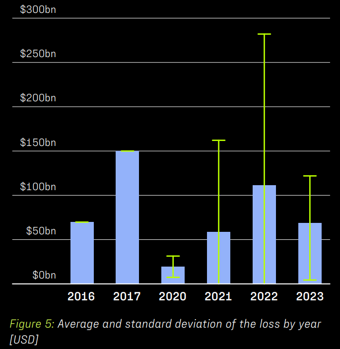 Gemiddelde en standaardafwijking van het verlies per jaar, USD. Bron: Halborn